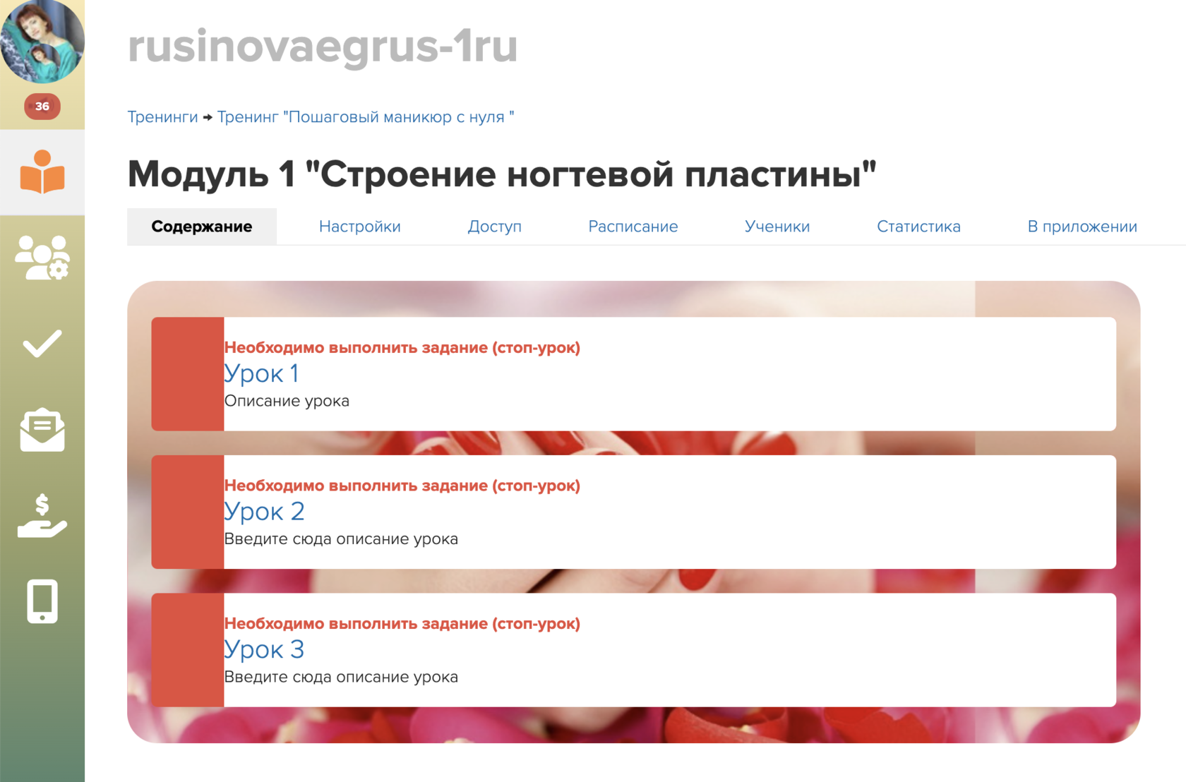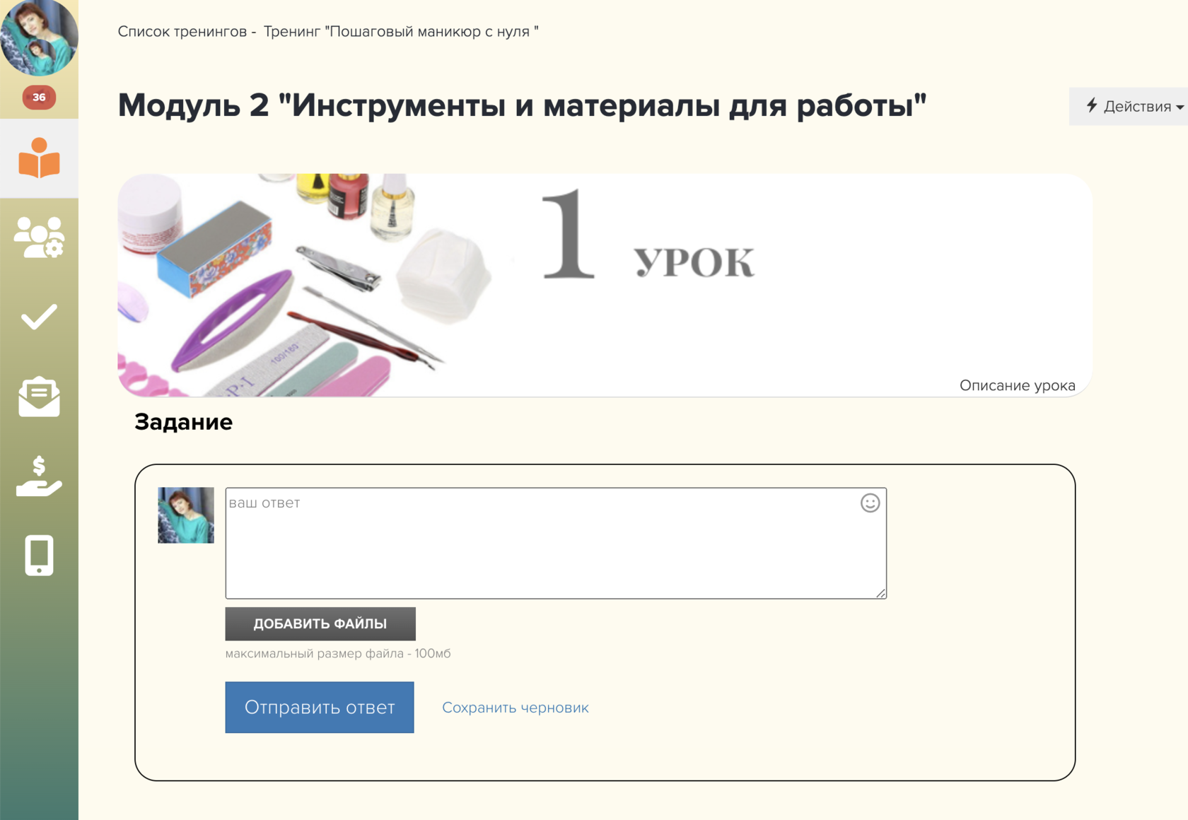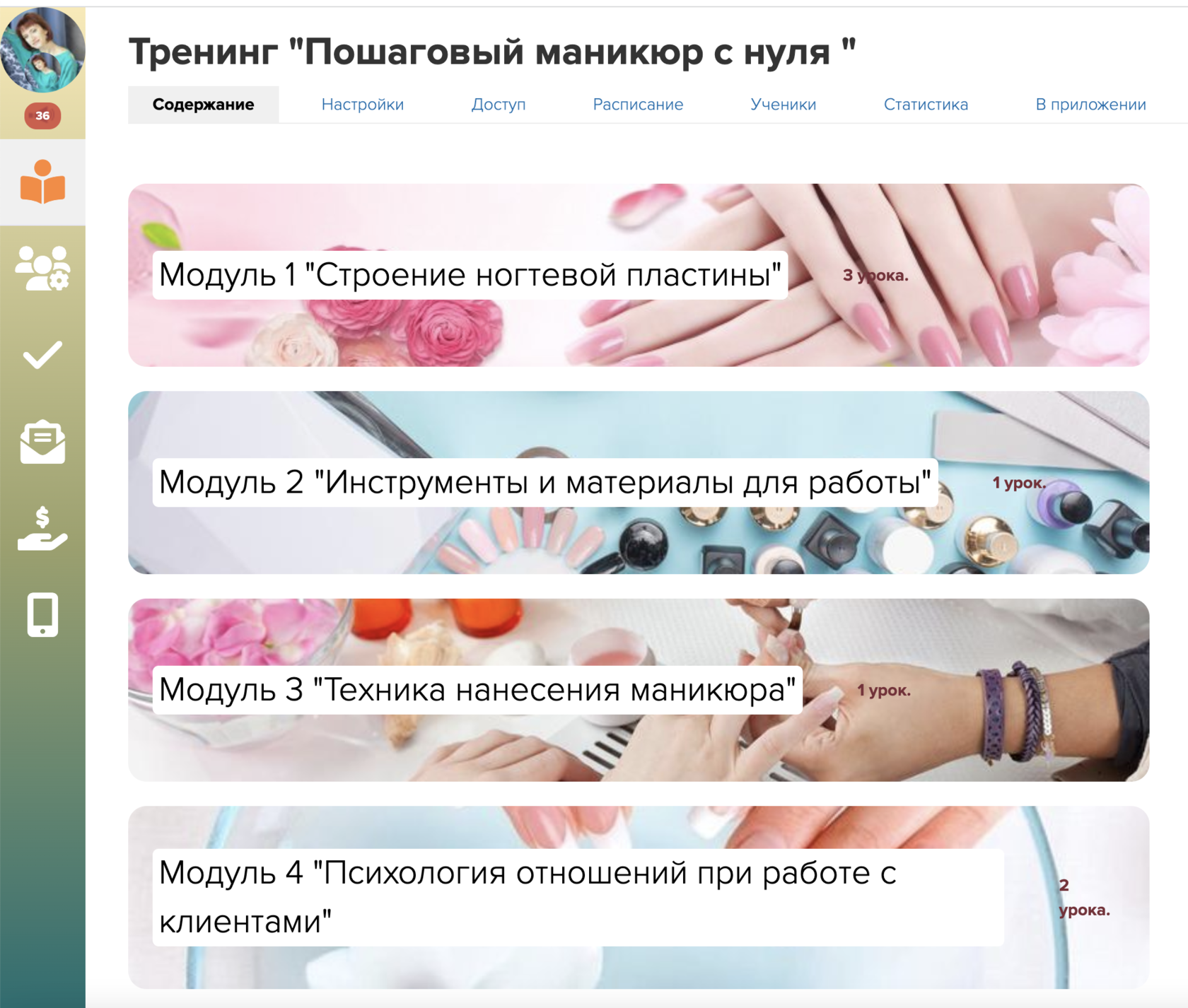 Задача сделать красивое оформление тренинга, модулей и уроков