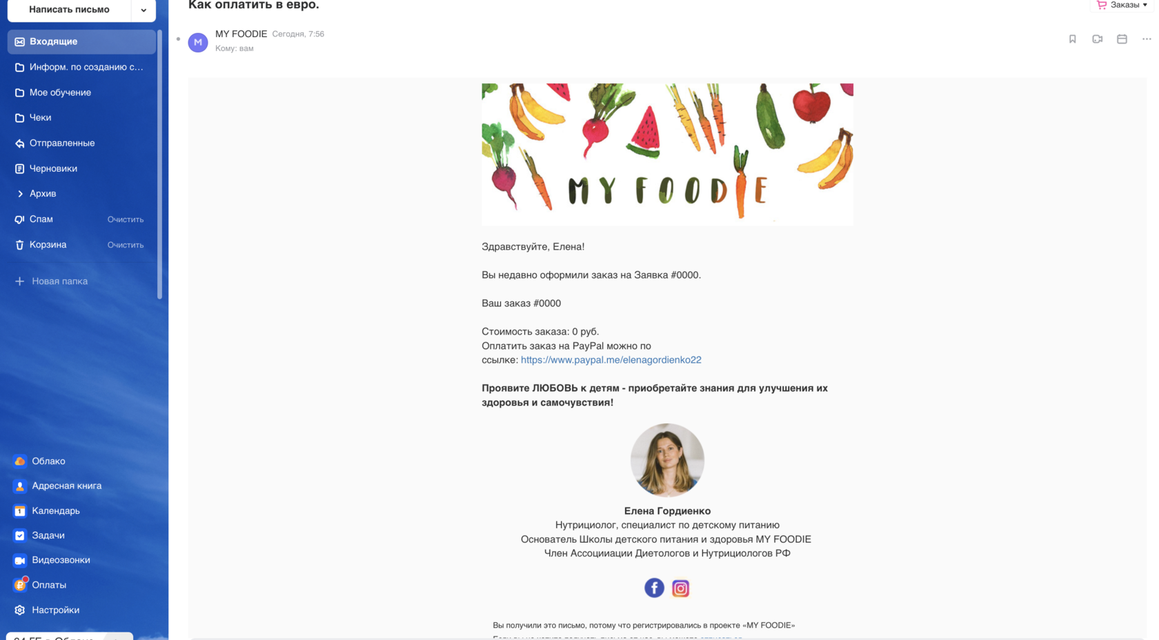Важный момент: я заметила одну вещь, тренер руками после каждого созданного клиентом заказа в евро, руками отправляла ему на почту ссылку для оплаты через Пайпал (Пайпал у тренера не подключен к Геткурс)